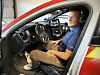 I en Volvo kommandobil parkert i brannstasjonens garasje demonstrerer han utstyret han og kollegene har utviklet. Den tidligere sersjanten fra FNs Standby High Readiness Brigade har tilbakelagt en usedvanlig karrierevei.